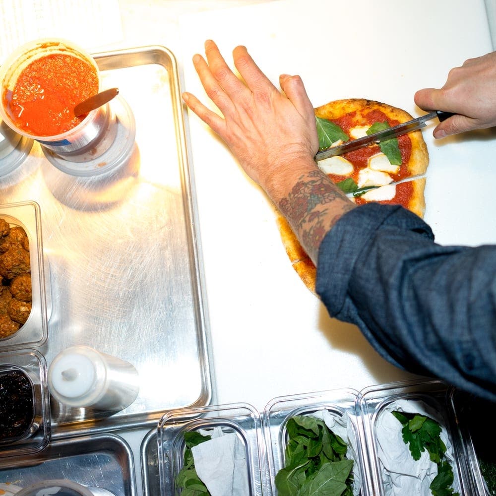 Double Zero is owned by the renowned Chef Matthew Kenny. The pizza is all organic, baked in a wood burning oven, and topped with all fresh ingredients. The house-made cheeses include a mozzarella that's made from cashews, and a ricotta from almonds and macadamia nuts. Inside, the restaurant is dimly lit, always crowded, and fully stocked with a large selection of wine.