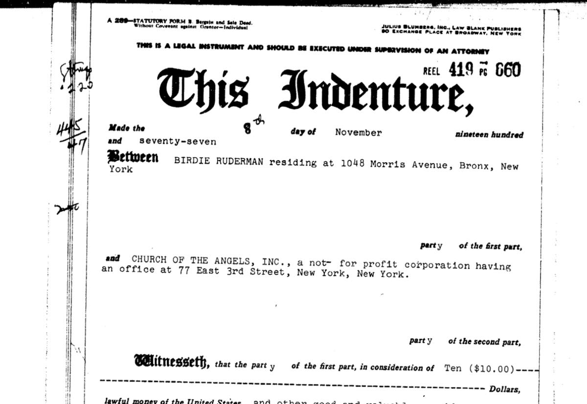 The New York chapter eventually bought the building in 1977. One report said the purchase was for $1,900, but the deed in public records shows the building was purchased for 10 bucks.