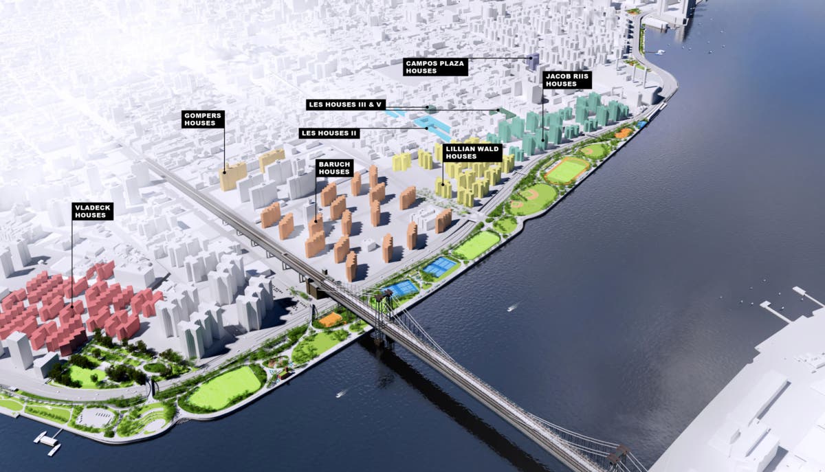 An overview of NYCHA developments along the East River. Image via City of New York community presentation on Feb. 28.