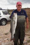 Billy had already deposited his 29-inch bass in the cooler and was now fast on a short. Frank had one throwback schoolie and then the action died as quickly as it started. The fish moved offshore to the west. A quick look at the south side revealed another blitz in the making at Brown’s rock beyond Turtle Cove. But it was time for Billy and me to hit the road.