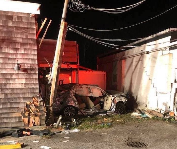 Springs Fire Department Chief Darrin Downs said the car crashed into the Montauk Market and Springs Auto Repair. The driver's side door was pinned up against a generator, he said; to extricate and evaluate Buestan, the passenger side of the vehicle needed to be removed, as well as a portion of the rooftop.