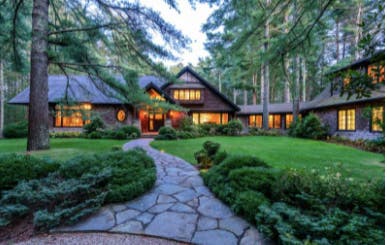 "Inspired by an exclusive Adirondack resort, the custom-built residence sited among majestic, towering white pine trees offers enchanting entertaining spaces with a magnificent great hall, stunning formal dining room, and multiple outdoor flagstone patios. This extraordinary compound is an oasis for the eyes β take a peek inside of this rustic dream home," a release said.