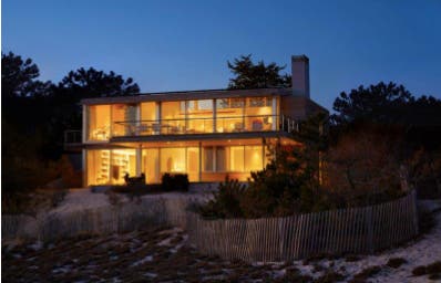"Situated on Bluff Road, overlooking the Atlantic, this spectacular modern house has been infused with warmth, color, and the design aesthetic of renowned interior designer David Netto. To very loosely paraphrase Winston Churchill, this is the lesson: 'Never, never, never settle for a boring house. Respect the box, but never let modernism harden into a doctrine that stops people from being comfortable or from living the way they want to. It may be the architectβs mission to create a crisp, minimal envelope, but it is the decoratorβs job to find ways to add mood and sensuality, even through illusion,'" the release said.