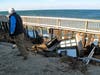 On the beach at Hither Hills, Dess said beach and dunes were lost, though the width of the beach had been replenished with sand that had been washed away from further east. "I thank the Royal Atlantic for giving me the sand," he said. Two-by-six planks of wood scattered the beach, as well, and he surmised they had also been washed west from the Montauk resorts.