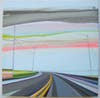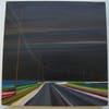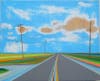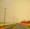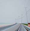 Haffner describes his paintings as contemporary landscape with a particular focus on road scenes. “I like a line,” he said, pointing out that at first his signature power lines were a way to create dynamic perspective in the work. “The power lines would bisect the sky,” Haffner said.