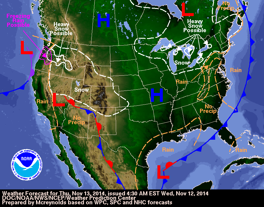On Friday the skies should be mostly sunny, but the high temperature will only reach the mid-40s, according to the NWS. Thereβs also a slight chance of snow before 10 a.m. Friday. No accumulation is expected.