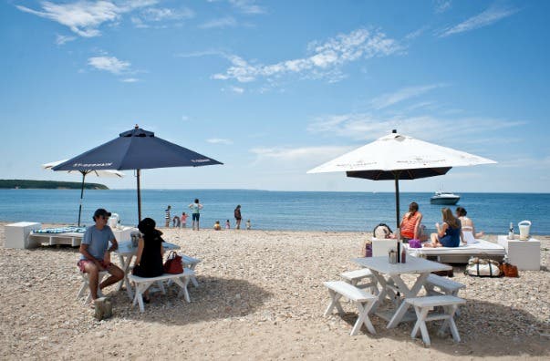 The restaurant, which opened in 2010 by Frank and Kristina Davis, Franklin Ferguson, Leyla Marchetto and Martin Cabrera, sits on a 200-foot private beach in Montau.