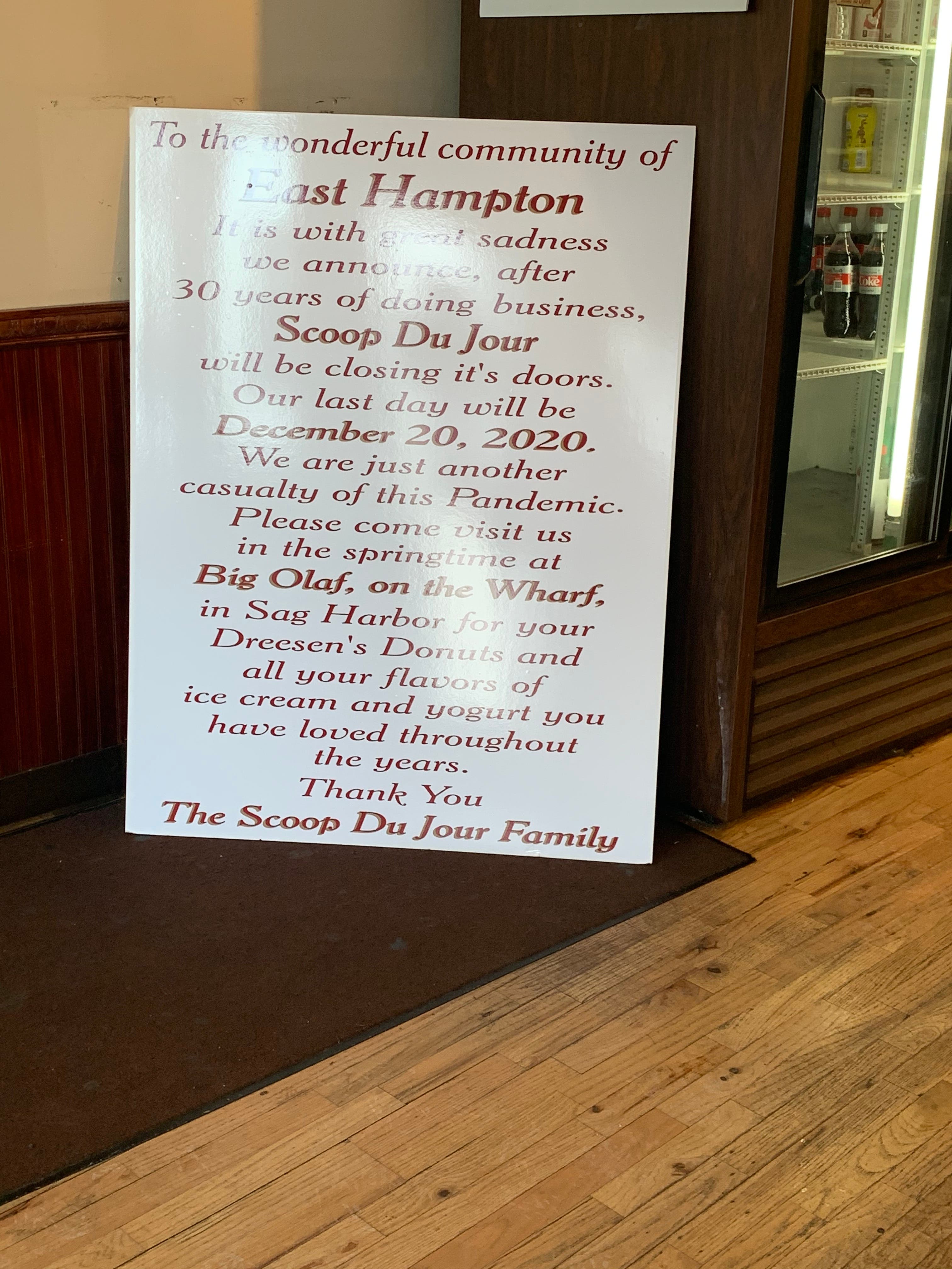 "We are just another casualty of this pandemic." Scoop Du Jour closes its doors in East Hampton.