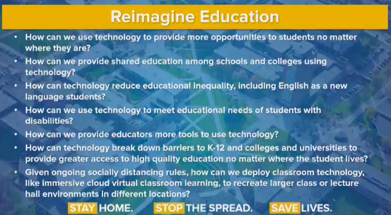 Teachers are heroes & nothing could ever replace in-person learning--COVID has reinforced that The re-imagine education task force focuses on using technology most effectively while schools are closed & to provide more opportunities to students no matter where they are https://t.co/r4XBzPgUzq