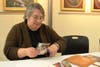 Reverse decoupage artist Fern Lambroza teaches a creative craft class at EMPL.