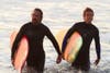 The climatic last act includes the elusive wave that Jay has trained for. Watching surfers launch from boats instead of treading out to beyond the underwater plateaus of the coastline serves as testament to the endurance required to tackle this monster. When the series of mavericks come to shore, and literally cause near-hit collisions between boats, it seems like a reflection of Clooney's Perfect Storm. The Mavericks are massive and are shot with cinematic excellence. The fact that anyone can ride, let alone survive, one of these bucking curls. The intensity and majesty of these forces of nature made manifest are enough to make the whole film worthwhile.