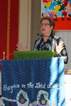 Sunday morning GCCC member and friend, Robin Laisure introduced Ms. Stern as a "brave and caring woman." Stern spoke about her personal experiences working with children from 42 countries with UNICEF.
