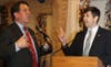 Nassau County Legislator Francis Becker and Frank Scaturro, who will vie for the Republican nomination in the 4th Congressional District to face incumbent Carolyn McCarthy, D-Mineola, this fall, brought their campaigns to the Long Beach Tea Party last week.