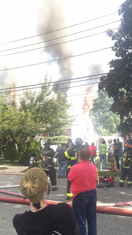 Firefighters battled a blaze at an East Meadow home Wednesday morning.
