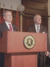 Surrounded by fellow Republicans Legislative Majority Leader Peter Schmitt and County Comptroller George Maragos, Mangano said he was “concerned with (NIFA’s) motivation,” over what it says is a $176 million budget deficit, especially since the state watchdog did .
