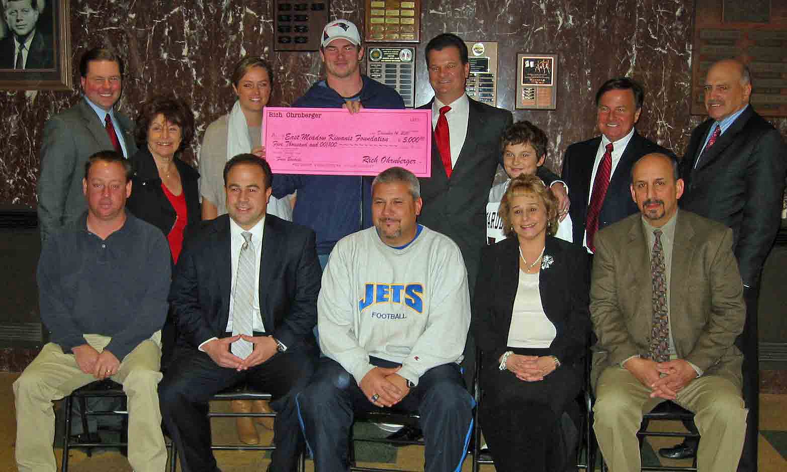 Rich Ohrnberger will be making a big difference in the lives of many East Meadow families this holiday season. In a Dec. 14 ceremony at , the New England Patriots' offensive lineman presented the East Meadow Kiwanis Club with a $5,000 gift for its Holiday Basket Program.