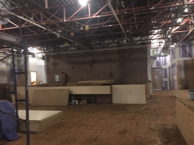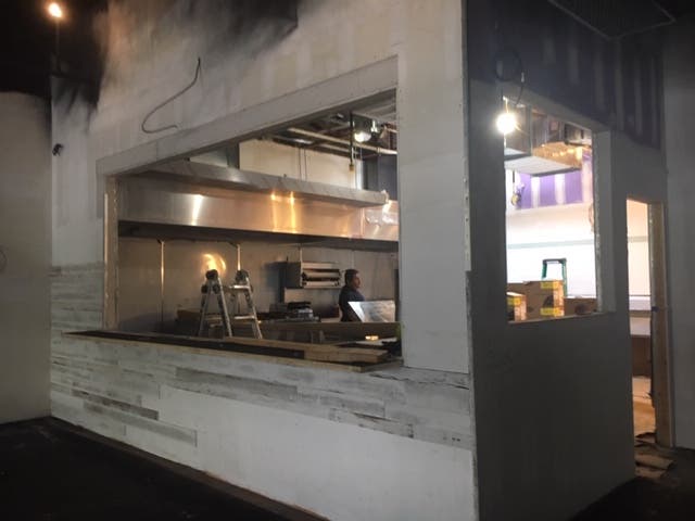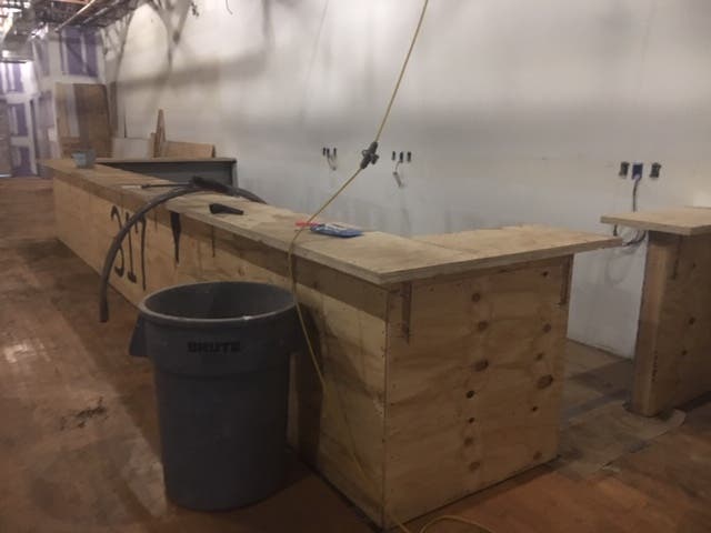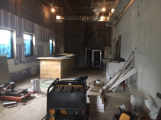 While the interior is still being finished, the open kitchen is prominently displayed in the first area of the business. Behind the restaurant space is a stage, where the national acts and off-broadway productions the gastropub will attempt to book will perform. Cooking classes and dinner demos will also occur there. On each side of the event space are two bars.