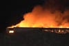 A Suffolk County police officer reported that the abandoned Grumman factory building, north of Conklin Street and near the Long Island Rail Road tracks, was in flames around 12:21 a.m.