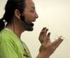 Powers, who runs tours and teaches about the environment, brought a reptile, hissing cockroaches, a tarantula and other creatures to show children--and their adults--how to treat them carefully and to appreciate their roles in the natural world.