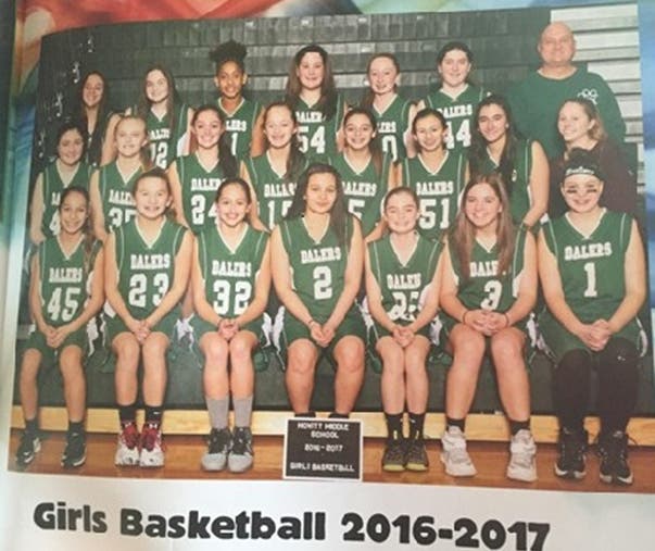 Yearbook photo with Mr. Jim Anziano and the girls’ basketball team.
