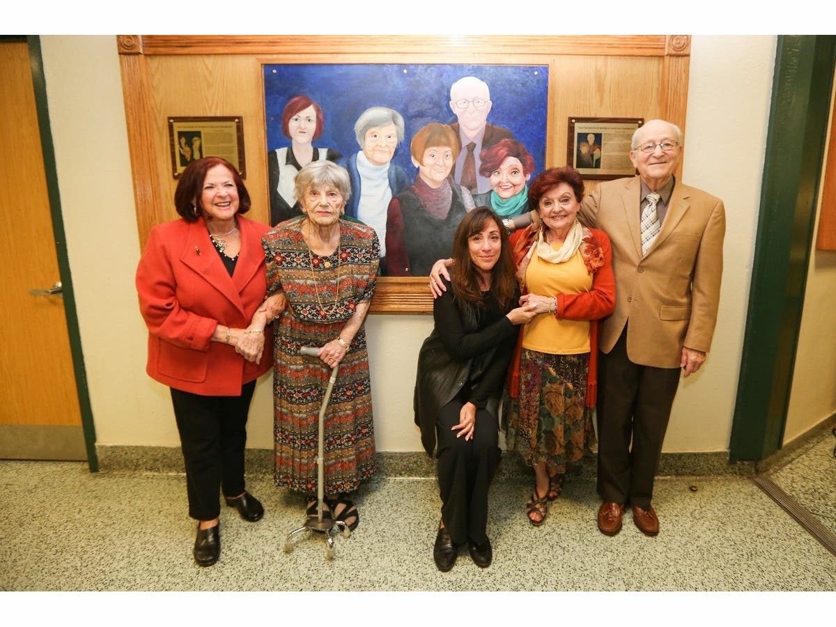 PHOTO: Five Holocaust survivors and the daughter of a deceased survivor stand in front of the Farmingdale High School Holocaust Mural and Memorial after its unveiling during a recent ceremony. The student-made mural will be used as a resource for Farmingdale High School English 10 classes that study the holocaust.
