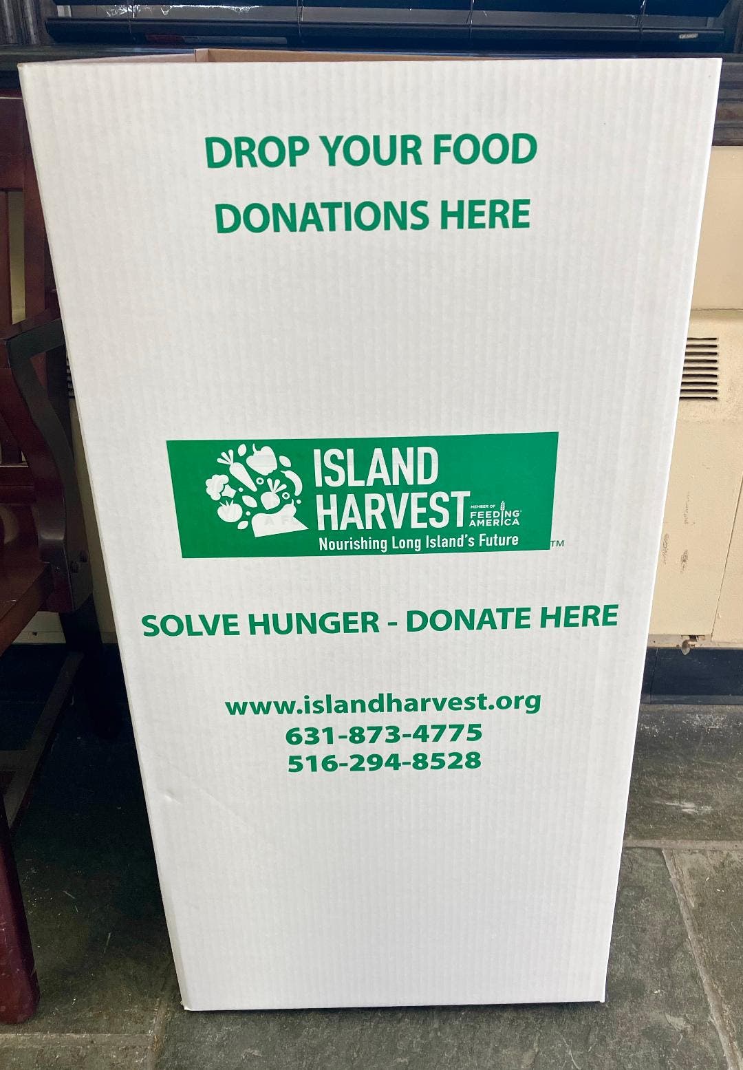 The village is looking to give back in other ways. It set up an Island Harvest donation collection box in the lobby of Farmingdale Village Hall for non-perishable food donations.