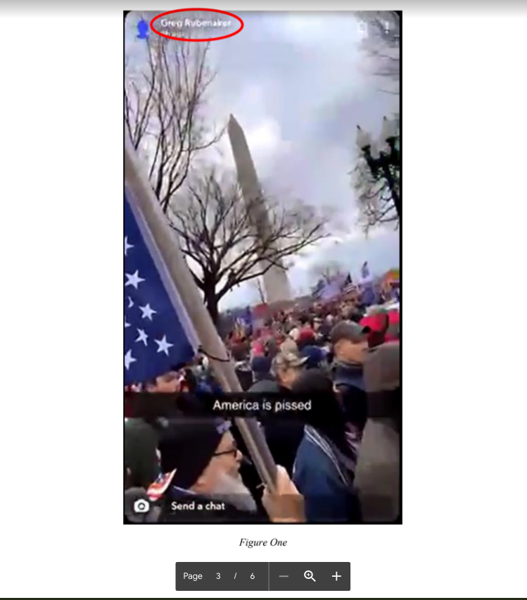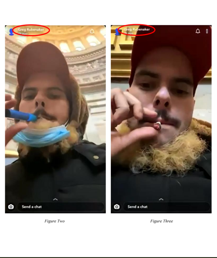 A witness who went to school with Rubenacker submitted a recording on Jan. 11 of a Snapchat story Rubenacker posted to his account, said John M. Mocello, an FBI task force officer investigating criminal activity in and around the Capitol. Rubenacker sent multiple Snapchat videos of him inside the Capitol on Jan. 6 to the witness, Mocello said. Rubenacker also posted videos to his Snapchat story that other users could see, including the witness, Mocello said.