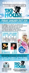 The Ski House resembles a ski lodge, with staff dressed in white. Every Friday customers can enjoy $1 beers and shots from 10 p.m. until midnight, Blue Ice specials, dancers and guest DJs. Late night snacks can be ordered at the kitchen until 1 a.m.