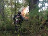 The East Farmingdale Fire Department responded to a call of a single car accident with fire at 12:33 p.m., on the westbound side of the Southern State Parkway at Route 110.
