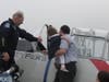 The GEICO Skytypers met with contest winners, spoke about skytyping and took them aboard their SNJ-2 WWII-era vintage aircraft. The Skytypers are a group of accomplished aviators known for their precision formation flying techniques used to create giant messages in the sky.