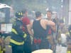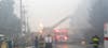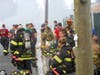 Because of reports of possible lightning, firefighters moved off the ladders used to extinguish the blaze in the upper region of the buildings.