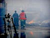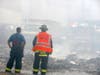 The area around Paragon Recycling and Transfer on Dale Street in West Babylon was still thick with smoke in late afternoon, though most of the fire was out. Small piles of materials from the inside of the building continued to flame up in the lot behind the building.