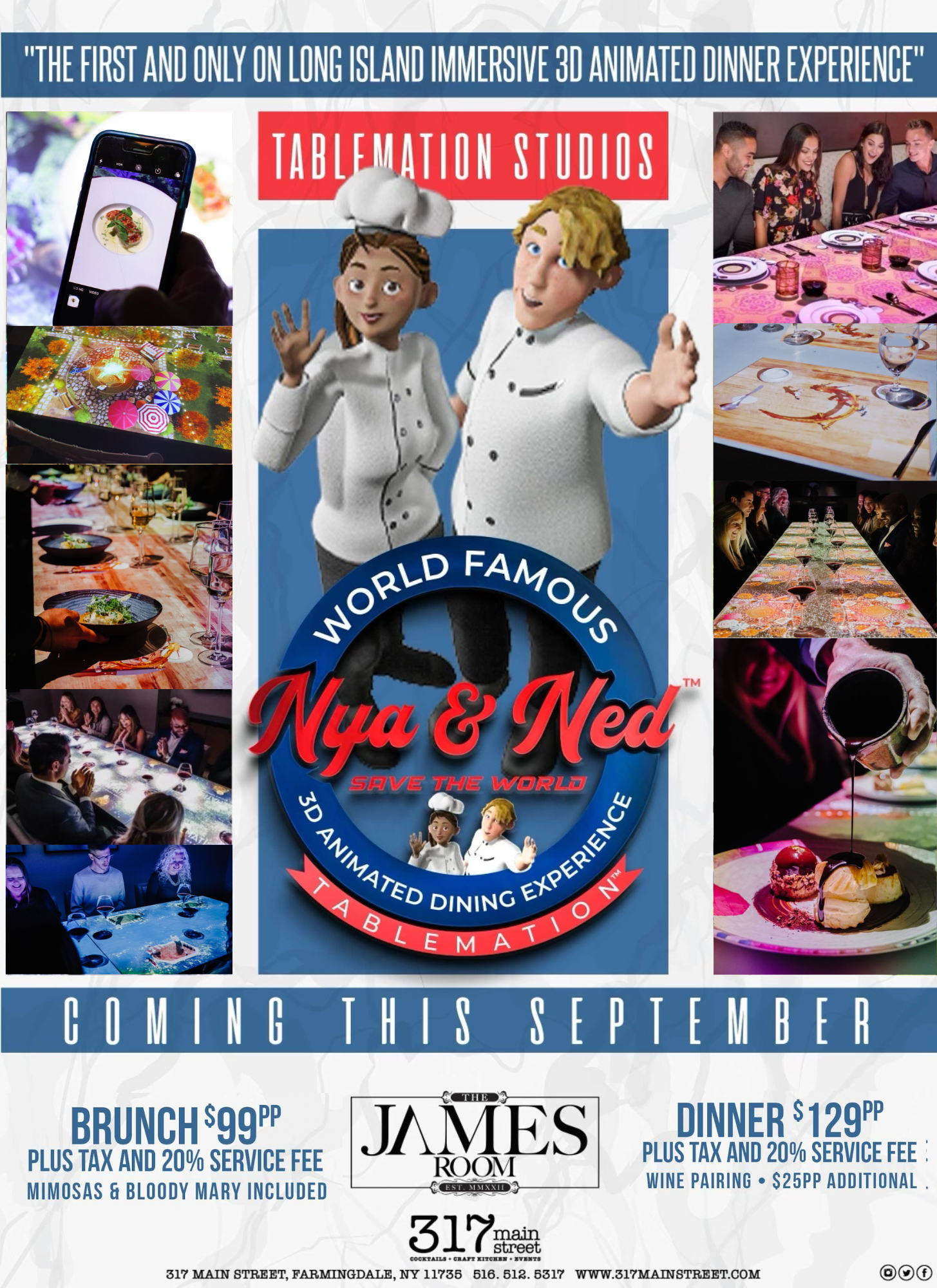 The James Room in Farmingdale is taking reservations between Sept. 13 and March 13 for immersive three-dimensional meals, said chef Eric LeVine. Tickets can be purchased on 317 Main Street's website. The James Room is at 319 Main St., Farmingdale. Normally a private occasion venue, the room is between 317 and The Nutty Irishman.