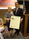 After a flag salute led by Vietnam Veterans of America Nassau Post 82, and the singing of the National Anthem by local teen Rebecca Ditzel, Saladino sang the praises of the six reward recipients, presenting them each with large framed certificates of merit.