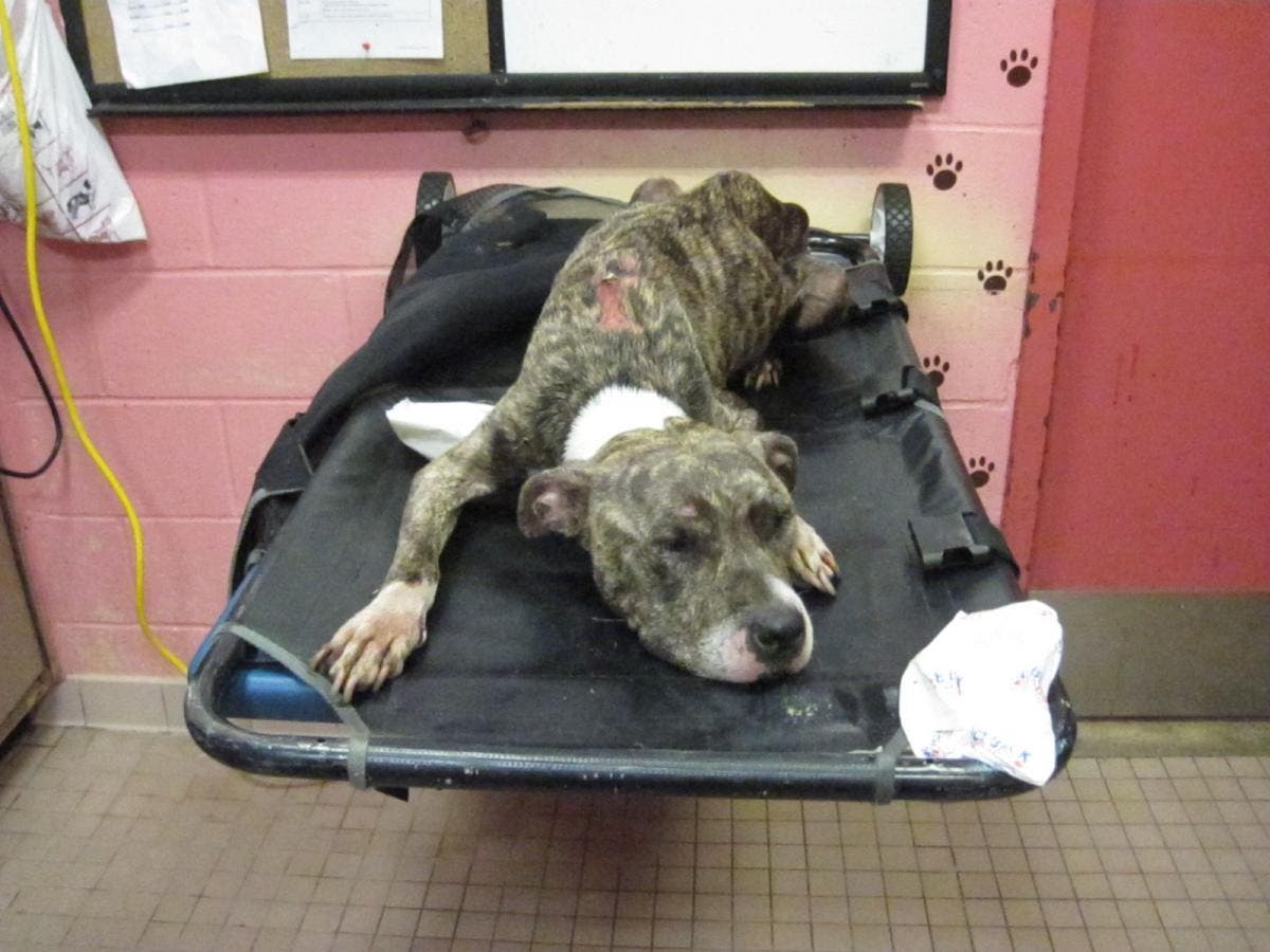 On Aug. 11, the terrier/pit bull mix, named Terry by DA investigators, was dropped off by an unknown person at approximately 3 p.m. at the Five Towns Animal Hospital, located at 157 Sheridan Boulevard in Inwood. The dog was found to be severely emaciated and too weak to hold her head up, officials said.