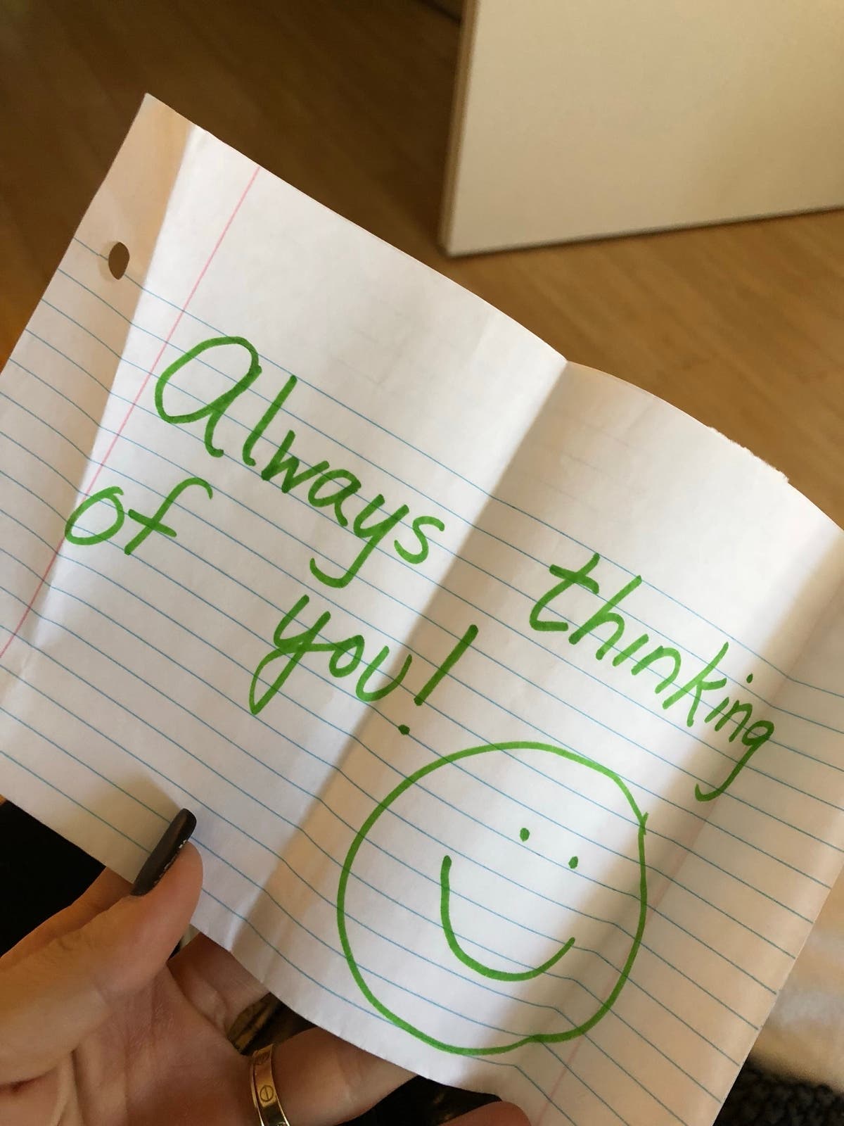 Mr. Smith then pulled out a tissue and wrote, “You’re what makes me get out of bed in the morning.”