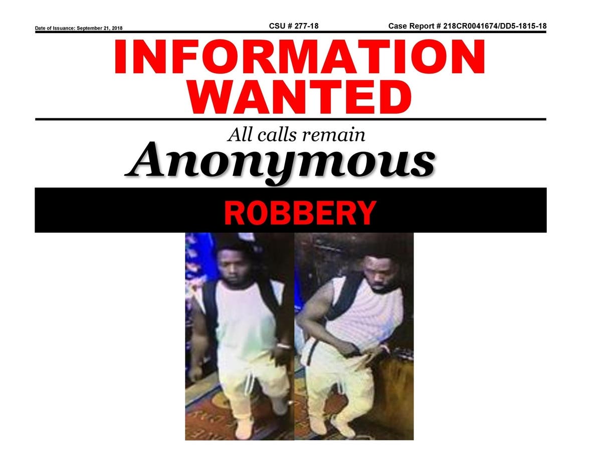 According to police, the man pictured above was at a convenience store on Woodfield Road on Aug. 11 when he robbed another person. During the robbery, police say the man pulled out a handgun and struck the other person on the head, then fled south on Woodfield Road on a black bicycle.