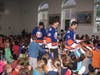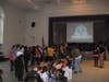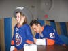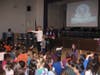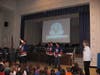 Physical education teacher Jesse Corben, who arranged the visit, aroused wild cheers from the students and teachers as he introduced the players into the auditorium. Many kids, as well as teachers, wore Islanders jerseys and waved team souvenirs that they brought from home. The presentation started out with a short film of past game highlights, featuring footage of notable plays.