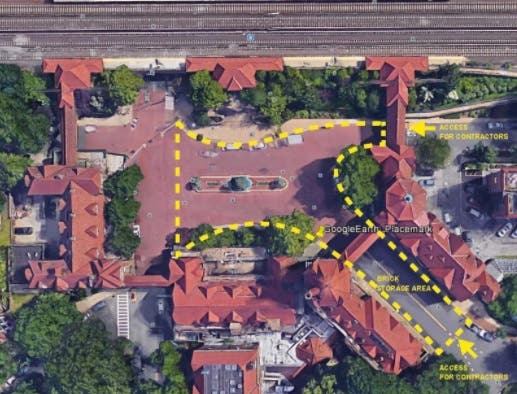 The Forest Hills Gardens Corporation is mulling over plans to pedestrianize Station Square following a restoration of the square's historic brick roadway that will soon be complete.