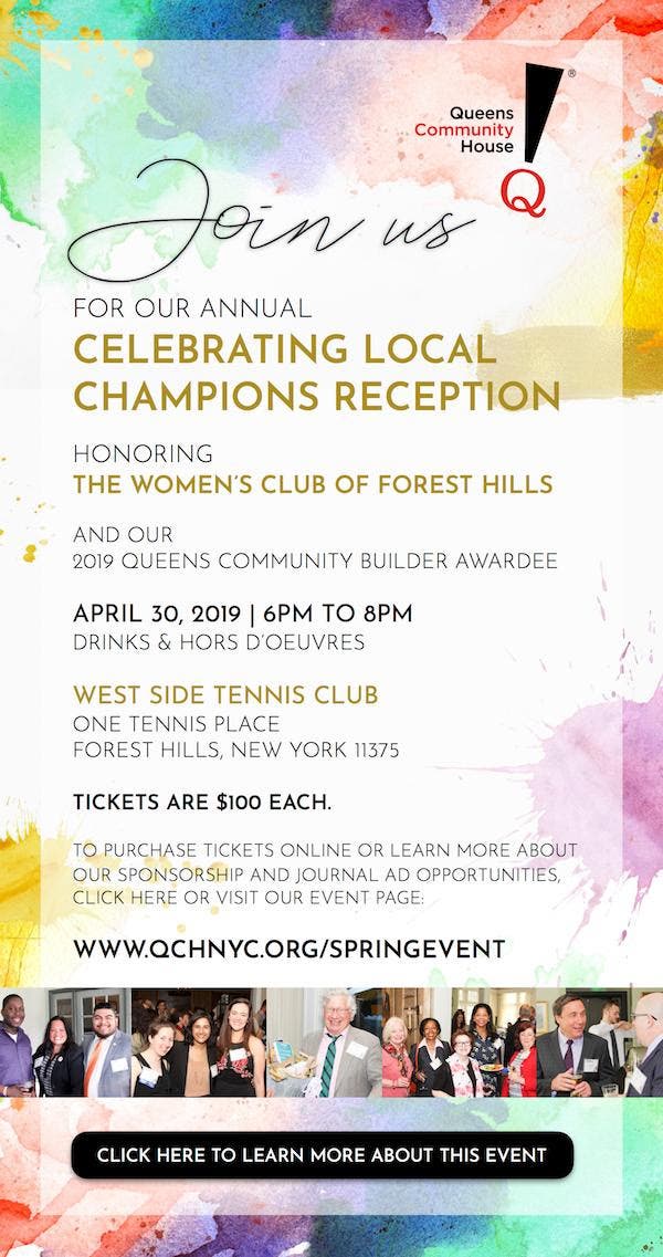 Queens Community House, a social service organization originally known as Forest Hills Community House, will pay tribute to the 108-year-old women's organization during their annual spring fundraiser on April 30. The event celebrates groups and individuals dedicated to bettering the Queens community.