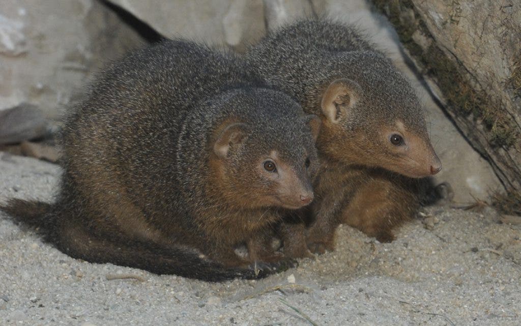 Like their cousins, the meerkats, dwarf mongoose are highly social animals living in cooperative family groups. Visitors will enjoy their busy behavior, digging under rocks, popping in and out of crevices and even coming close to the window to make their own observations. Once the family has settled in, keepers will provide them with similar enrichment as the meerkats. A favorite is a bundle of hay loaded with crickets which encourages natural foraging behavior.