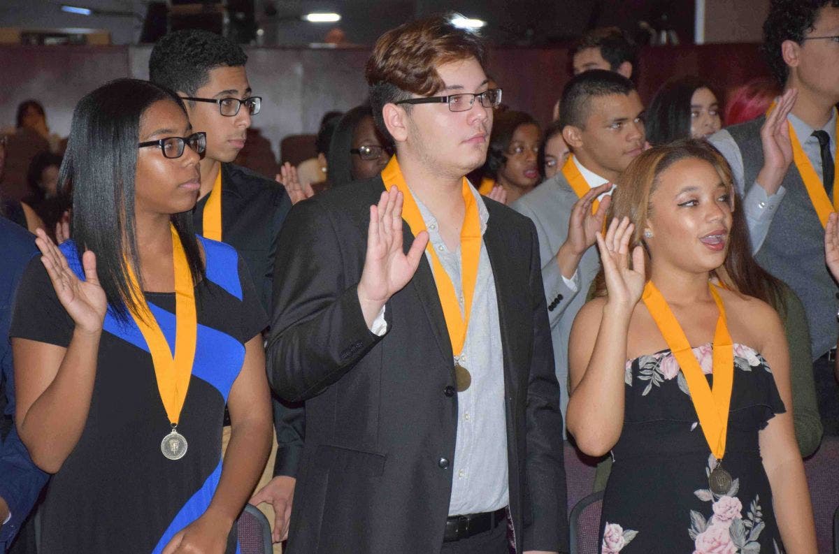 The new inductees, sitting among current members of the NHS, were sworn into an organization that recognizes the four tenets of scholarship, service, leadership and character. Adviser Eileen Shultis, who led the program, announced the six NHS officers: President Phalan Smith, Vice President Nyeem Mahoney, Secretary Kimberly Adames, Treasurer Karissa Collins, Student Liaison Elizabeth Sekreta and Director of Community Service Jamie Lopez-Lamar.