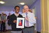 Kuncham was presented with a framed compilation of all routes from his 100-mile Peace Walk through the Village of Freeport while Singleton was given a piece of art by Freeport High School student Nyeem Maloney.