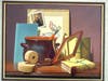 Castro retained his memories of the beauty in the Pacific. He painted quite a few still lifes using nostalgia as inspiration from his lengthy stay in Japan during the U.S. occupation following World War II. In his travels with his wife, Castro collected pieces from flea markets, garage sales and estate sales based on their love for all that was Asian. Family and friends contributed items they found as well. The outcome of these forays can be seen in his award-winning paintings The Jade Necklace and The Seven Dragons.