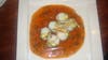 Tom Yum Goon (6) is a Thai soup that is sour and spicy served with a slice of lime. Use the entire wedge of lime to diffuse the intense heat of the soup. Studded with sweet pineapple chunks, medium shrimp of good quality and slivers of exotic mushroom, the cilantro perfumed broth had a nice red sheen from the abundant red pepper paste used. Intensely hot, it satiated this flaming red-head. Warning: it is not for unadventurous palates but a must for those who dig spice.