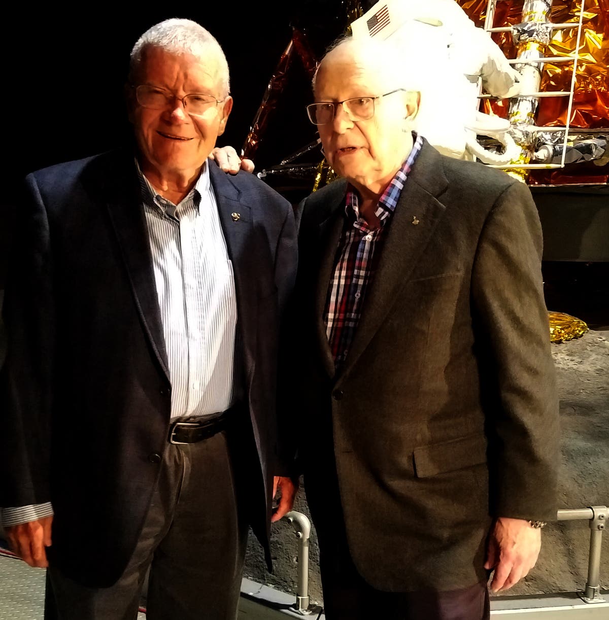 Fred Haise was supposed to land on the moon in LM-13. He missed his first chance to land on Apollo 13, the ill-fated mission that almost ended in disaster. (Bill Paxton played him in the movie.) He was joined at the announcement ceremony by Alan Bean, who was an astronaut on Apollo 12 and the fourth man to walk on the moon.