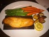 I ordered the Cedar Plank Roasted Salmon - which actually cooks on a cedar plank and is served that way. It came with asparagus, Roasted herb potatoes and carrots.
