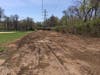 A finer grading of this newly cleared area is being performed and grass seed put down to create coverage that is more in line with the character and use of the surrounding parkland. The area is located next to the first base line of the newly created 75-foot baseball and softball field and continues all along the north side of Stewart Field.