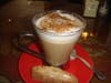 A steaming squat cup of frothy cappuccino arrived with a petite Amaretto biscotti within five minutes of ordering. Dipped into the hot coffee, the biscotti became soft and cake-like and had beautiful pieces of fresh green crunchy pistachios. It was a perfect accoutrement to the cappuccino.