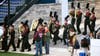 This year's drum majors are Christine Pando and Lauren Reale. Student directors are Marissa Burdi and Meaghan Leahy. Section leaders are Amanda Ferraro (flutes), Will Chow (clarinets), Kimberly Ryan (horns and saxophones), Robert Pietrzak (trumpets), Matt O'Conor (drum line), Sam McHugh (pit) and Justin Sarfin (low brass). Color guard captions are Michaela Dougherty, Kaitlyn Zwicke and Hayley Giumenta.